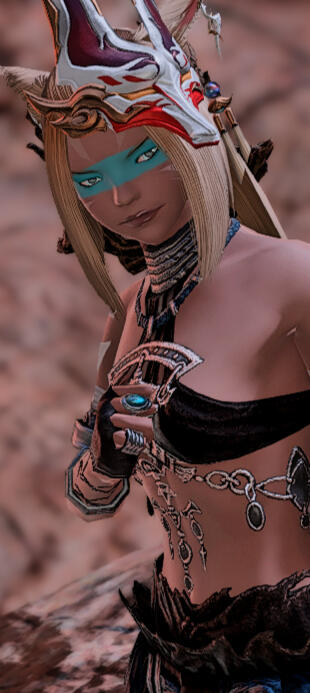 THOSE WHO WANDER Generations back two brothers of the M tribe vied for the title of nunh. The elder won and cast his brother out unto the desert of Gyr Abania. There he wandered until near death. Out of the dunes arose a great sand worm sure to swallow the man whole. Yet he stood before the great maw and let go his fear and it passed before him, guiding the man unto the safety of a cliffside cave. There he greeted others lead to the desert and the tribe took its name from the humble desert mouse that survives in places where many do not.They have kept to the deep desert ever since, taking in others lost to the dunes and only coming close to the small towns when in dire need. To many locals they may have heard of the tribe in passing but laying eyes on a Mo was a rare sight indeed. This changed when the Empire began to push into the territory and not even the secretive Mo were not spared their iron grip.Since Ala Mhigo's liberation the Mo have returned to their homelands to find some of their deep desert shelters inaccessible, their technology stolen, their numbers lessened, their way of life teetering on the edge. Yet they persist; patient and dedicated to the cause of keeping the dunes ready for Oschon's return.THE DESERT TRAINS THE FAITHFUL The Mo worship Oschon the Traveler, but hold the rest of the Twelve in high regard. Their ways have been shaped by the brutal nature of the dunes, strict in many ways that outsiders might find barbaric or downright strange. Water and its scarcity dictates most of the Mo's traditions and the structure of their tribes. They live were people rightly should not live, thanks in part to their resourcefulness and tenacity. Dew collectors, wind traps, super efficient water storage, aeroponics, and suits to enhance their survivability out on the dunes aid more aetherical means of survival, though some of these technologies have been lost due to the Empire's invasion and the passage of time.ON KNIFE'S EDGE Currently the Mo are struggling to keep their way of life even more so than ever before. Many of their northern most sietches, safe places, are out of reach and presumed destroyed. Many perished to the Garleans, some scattered into Eorzean life and the softness of the cities, never to return. Those who remain face an uncertain future, one teetering on their deeply held traditions and necessity that a post-Calamity world brings.THEIR EYES MARK THEM All members of the Mo tribe have pale blue eyes. Not a boon in the desert where the sun can be harsh, but they claim Oschon himself gives them this visible distinction to mark them as his especially. Within living memory, Xilhi joined the tribe with verdant green eyes from her home in the Black Shroud. Within a cycle her eyes took on this pale blue hue, having fully embraced life upon the dunes. Each tribe member also carries with them two things; a knife made from the tooth of a sand worm and a string of metal markers known as water rings.